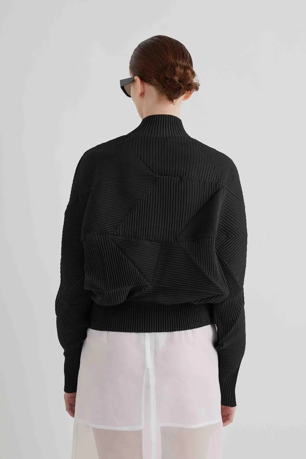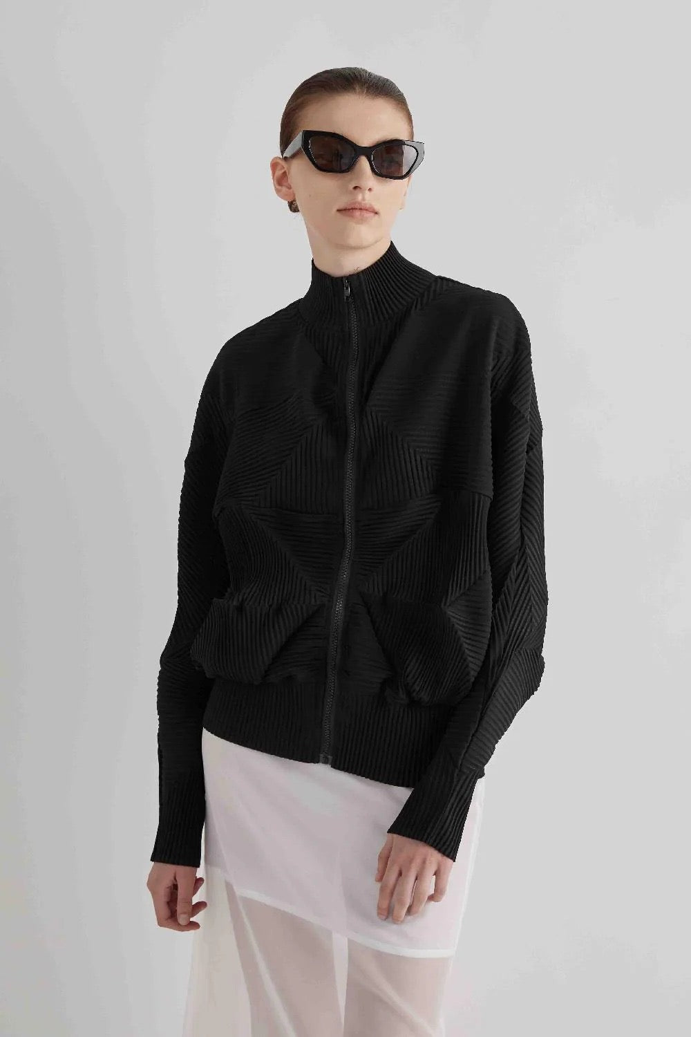 Giacca plissettata a manica lunga con zip sul davanti.
