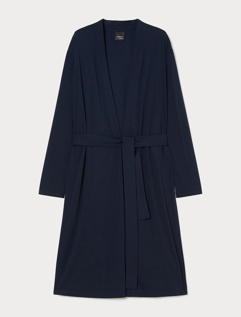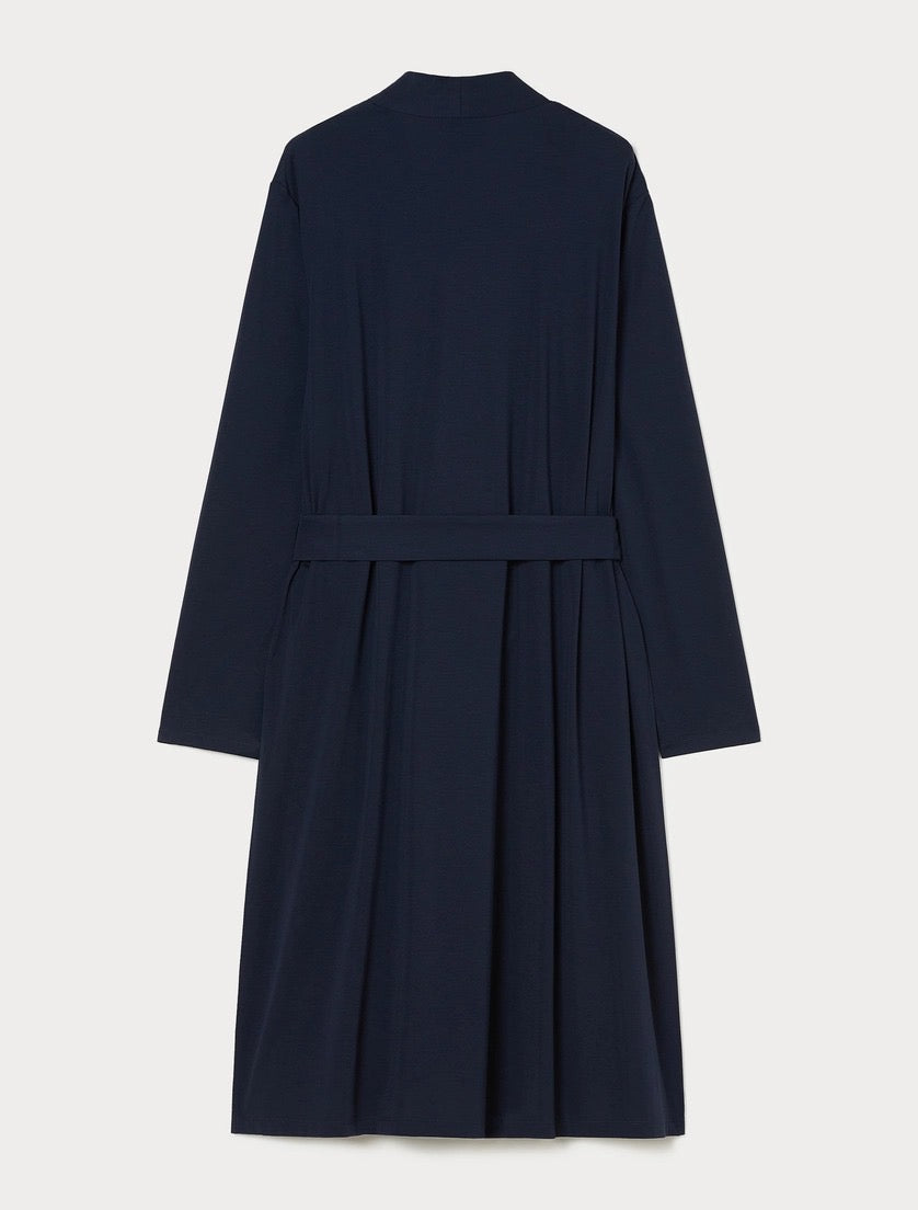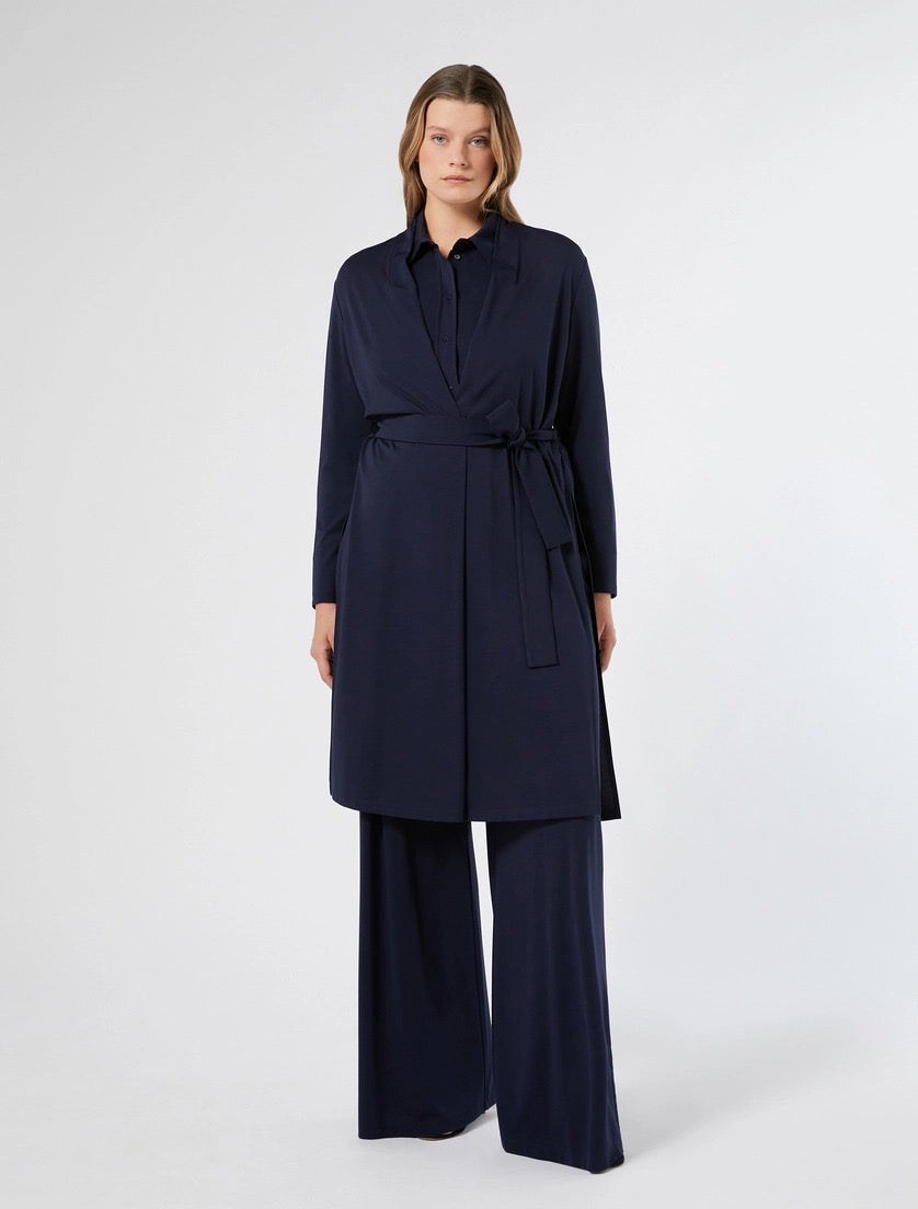 Valorizza il tuo stile con lo spolverino in jersey punto stoffa fluido, con cintura in vita. Perfetto in look tono su tono.